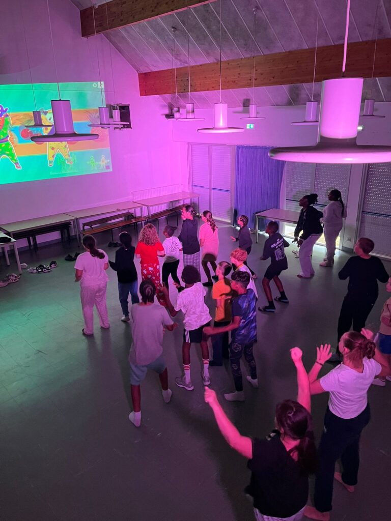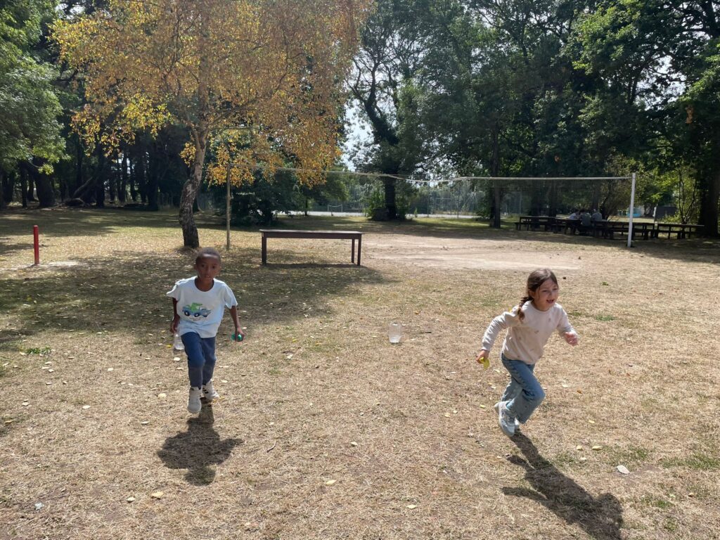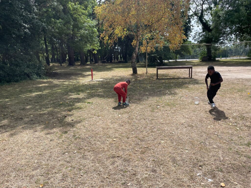 Nous jouons entre le soleil et la pluie. Hier soir, certains ont fait un just dance, on ne sait pas s’ils ont fait la danse de la pluie ou du soleil car nous jonglons entre pluie et éclaircies. Cela ne nous permet pas de se baigner mais on peut sortir, jouer et courir. Nous attendons la baignade avec impatience.